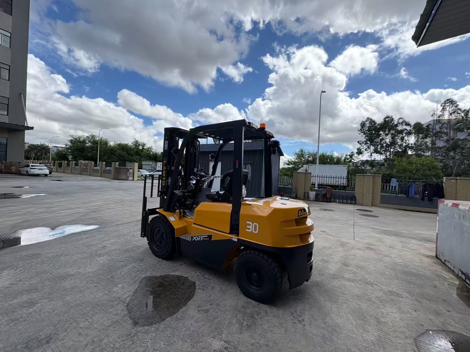 Powered by a 40 kW Xinchai C490 diesel engine, automatic transmission, and pneumatic tires, the Port Plus 3 delivers smooth operation with a max gradeability of 20% under full load. Its compact turning radius of 2395 mm allows efficient maneuvering in tight spaces, while the sturdy overhead guard and free lift height of 150 mm provide enhanced safety for operators.