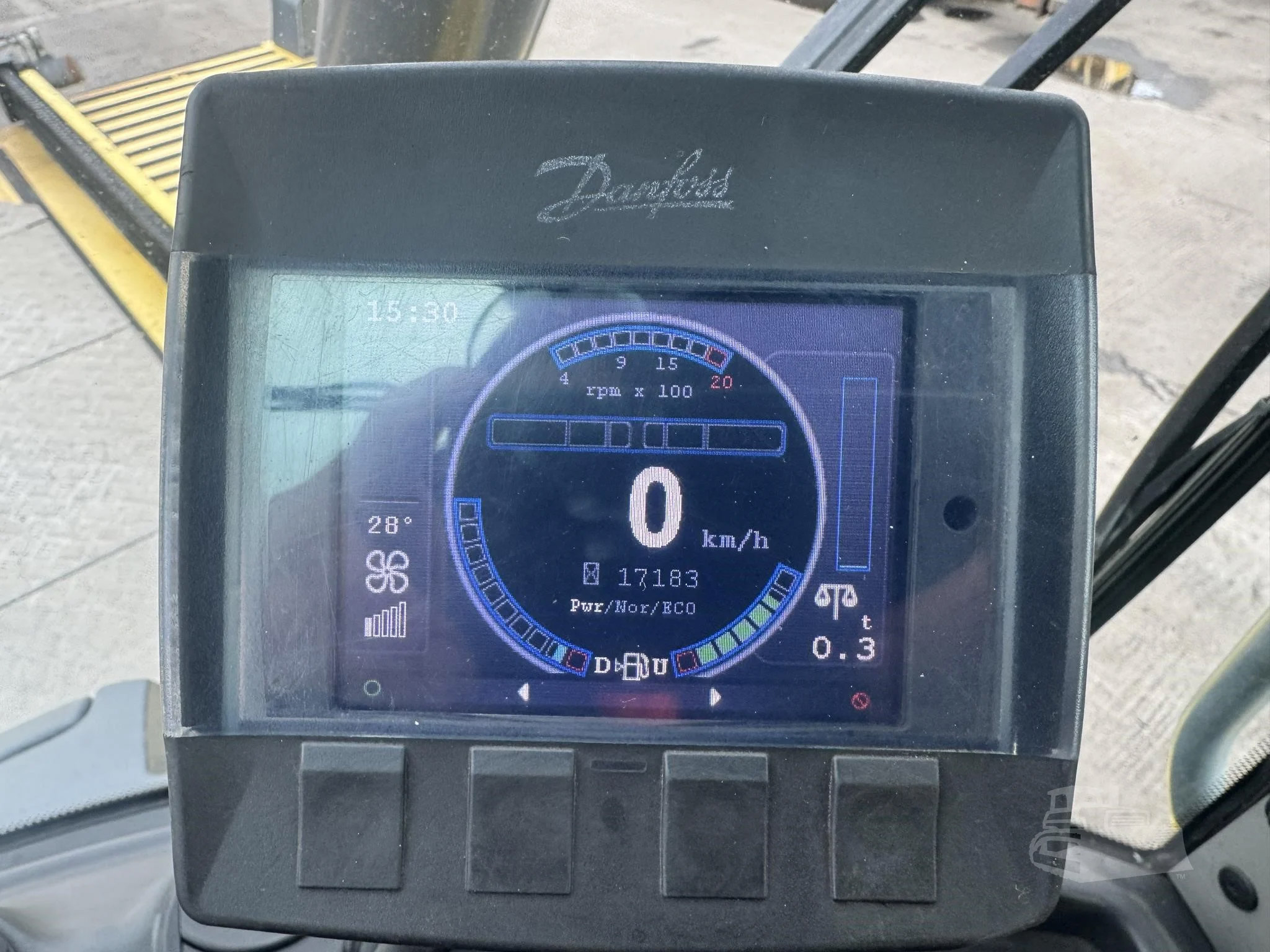 The floating cab suspension system reduces vibration and fatigue during long shifts, while the Danfoss PLUS+1® digital display provides real‑time monitoring of engine RPM, system diagnostics, and maintenance alerts.
